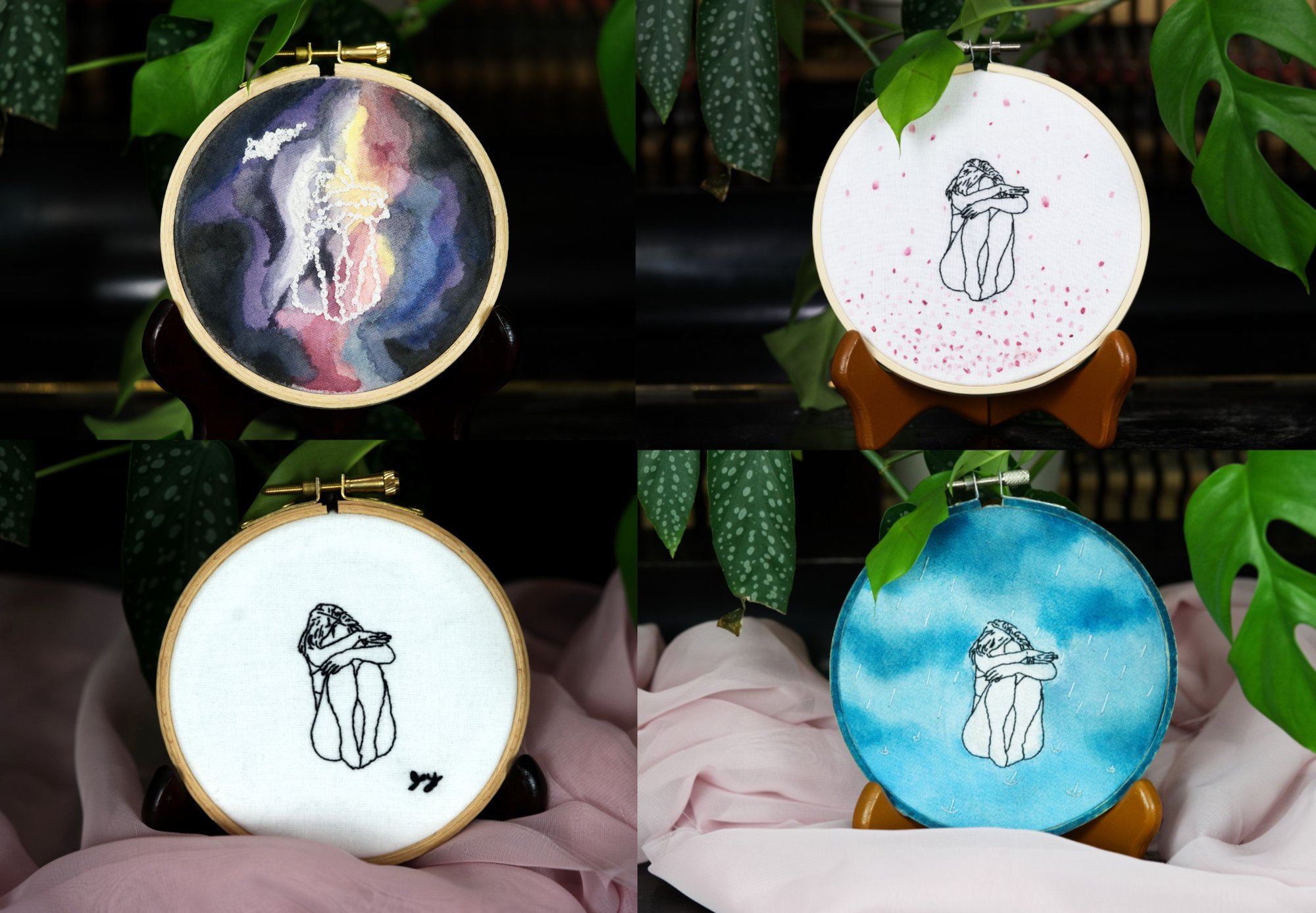 Each piece is made to order in about 1-2 weeks (plus shipping). Want to see this piece with a different background or stitch type? See my commissions page for contact details and we can work together to make your ideal version of "My troubles"!